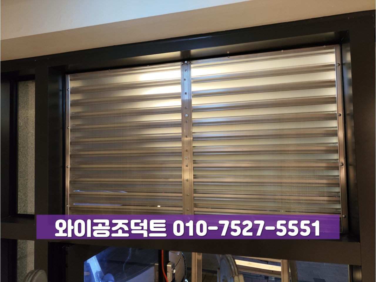 ㅇ 홀의 자연급기 통로로 스텐망 루버, 4분할 셔터그릴 시공